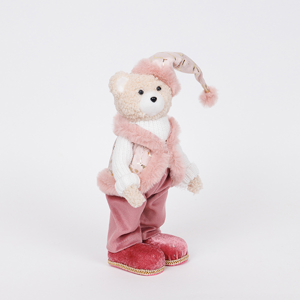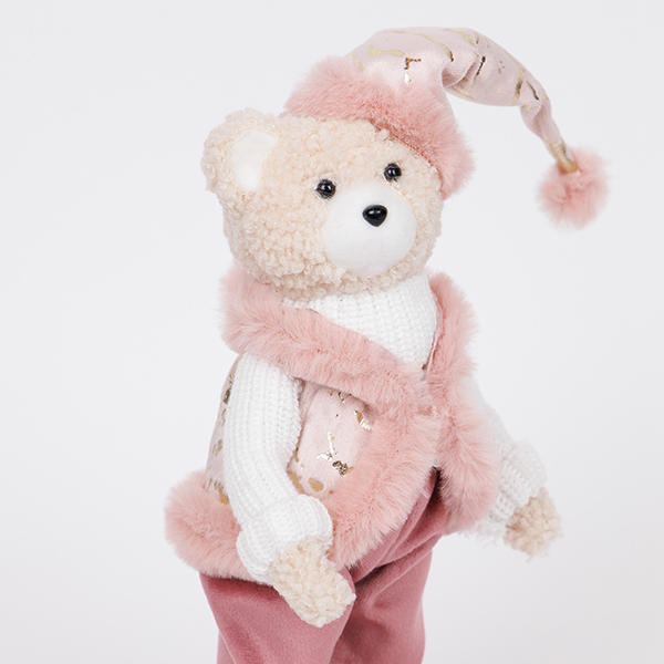 ΑΡΚΟΥΔΑΚΙ ΜΕ ΡΟΖ ΜΠΟΡΝΤΟ ΡΟΥΧΑ ΚΑΙ ΣΚΟΥΦΑΚΙ, 24cm 600-46714