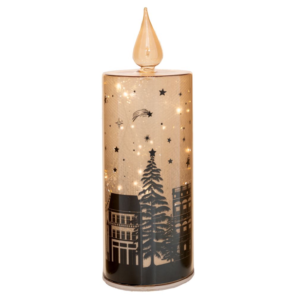 ΧΡΥΣΟ ΓΥΑΛΙΝΟ ΚΕΡΙ LED ΧΡΙΣΤΟΥΓ/ΚΟ ΣΚΗΝΙΚΟ 9Χ9Χ24ΕΚ ΜΠΑΤΑΡΙΑΣ ΠΕΡΙΣΤΡΕΦΟΜΕΝΟ 90911