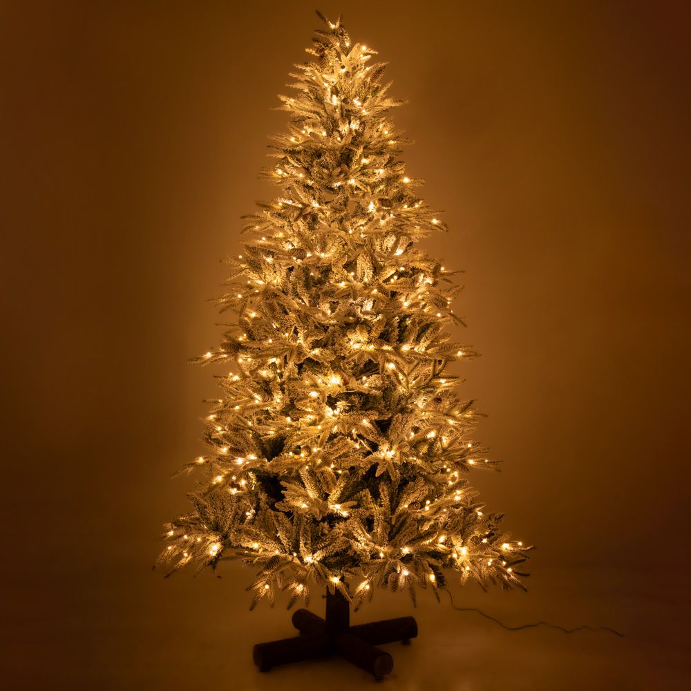 Χιονισμένο δένδρο ” PRE LIT SNOWY JERSEY PINE”, με ενσωματωμένα 800 RGB led λαμπάκια λευκά ή πολύχρωμα, σταθερά ή αναβοσβήνουν με 10 προγράμματα λειτουργίας. Το ύψος του είναι 210εκ και η διάμετρος της βάσης 135εκ. Διαθέτει 3024 tips, κουκουνάρια, καθώς και ξύλινη βάση. Το μήκος του καλωδίου είναι στα 5 μέτρα. Έχει εύκολη συναρμολόγηση τύπου ομπρέλα. Πρόκειται για την ανώτατη ποιότητα δένδρου που εύκολα θα στολίσει τον χώρο σας και θα εντυπωσιάζει για πολλά χρόνια .