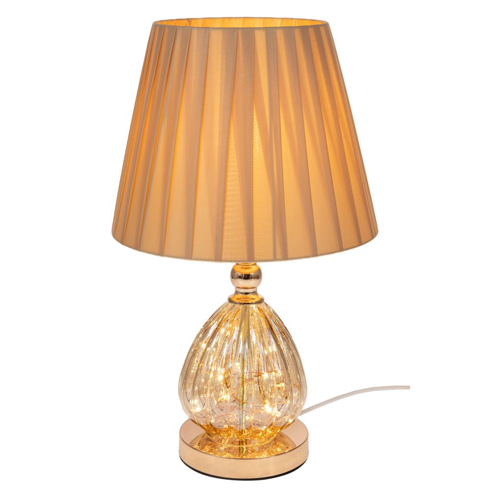 ΕΠΙΤΡΑΠΕΖΙΟ ΦΩΤΙΣΤΙΚΟ ΜΕ ΜΠΕΖ ΥΦΑΣΜΑΤΙΝΟ ΚΑΠΕΛΟ ΜΕΤΑΛΛΙΚΟ ΧΡΥΣΟ 28x49cm 757-10065