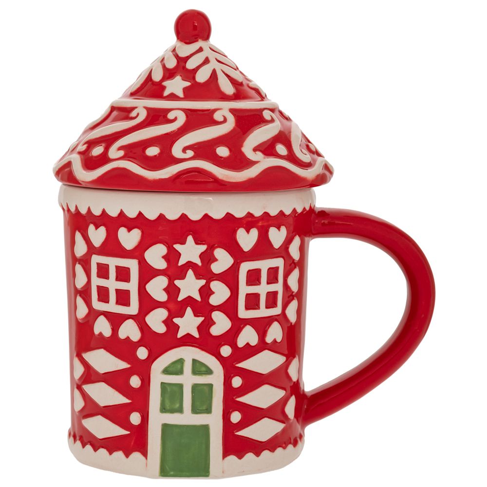 ΚΟΚΚΙΝΗ ΚΕΡΑΜΙΚΗ ΚΟΥΠΑ ΜΕ ΚΑΠΑΚΙ ΣΕ ΣΧΗΜΑ ΧΡΙΣΤΟΥΓΕΝΝΙΑΤΙΚΟΥ ΣΠΙΤΙΟΥ 14Χ10Χ15ΕΚ 90937