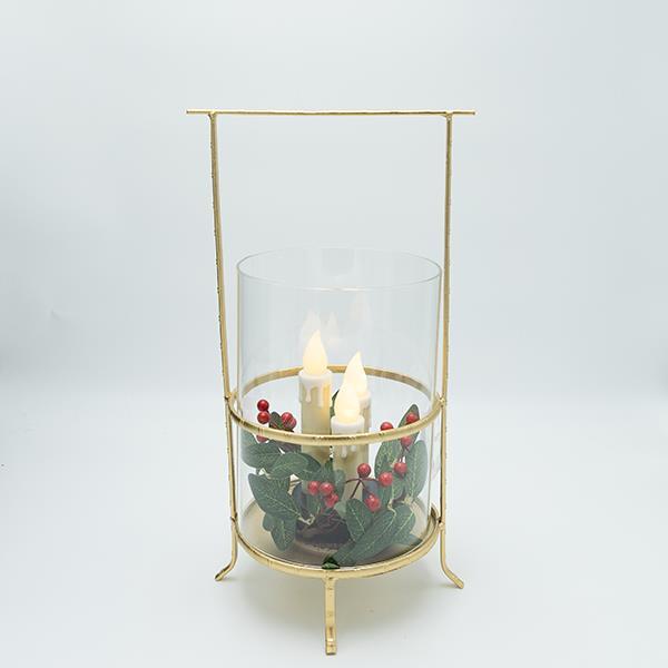 ΜΕΤΑΛΛΙΚΟ ΦΑΝΑΡΙ ΜΕ ΧΡΥΣΕΣ ΛΕΠΤΟΜΕΡΕΙΕΣ ΚΑΙ 3 ΚΕΡΙΑ, 20x17x37cm 600-47319
