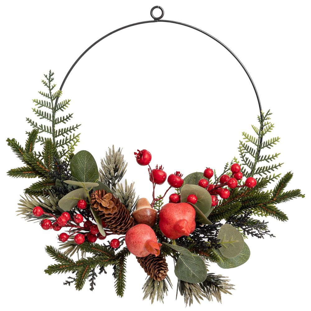 ΠΡΑΣΙΝΟ ΣΤΕΦΑΝΙ ΜΕ ΚΟΚΚΙΝΑ BERRIES ΚΟΚΚΙΝΕΣ ΜΠΑΛΛΕΣ ΚΑΙ ΠΑΓΩΜΕΝΟ ΚΟΥΚΟΥΝΑΡΙ Φ30ΕΚ 91029 €23.00