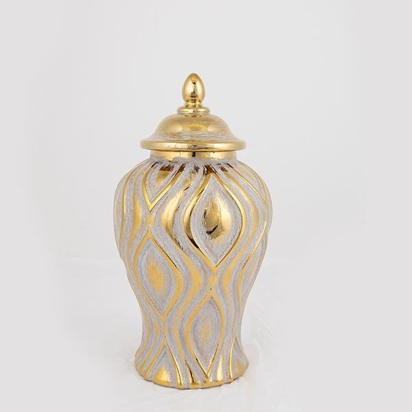 ΒΑΖΟ ΜΕ ΚΑΠΑΚΙ ΚΕΡΑΜΙΚΟ ΑΣΗΜΙ - ΧΡΥΣΟ 17.3x17.3x36.8cm 752-20017
