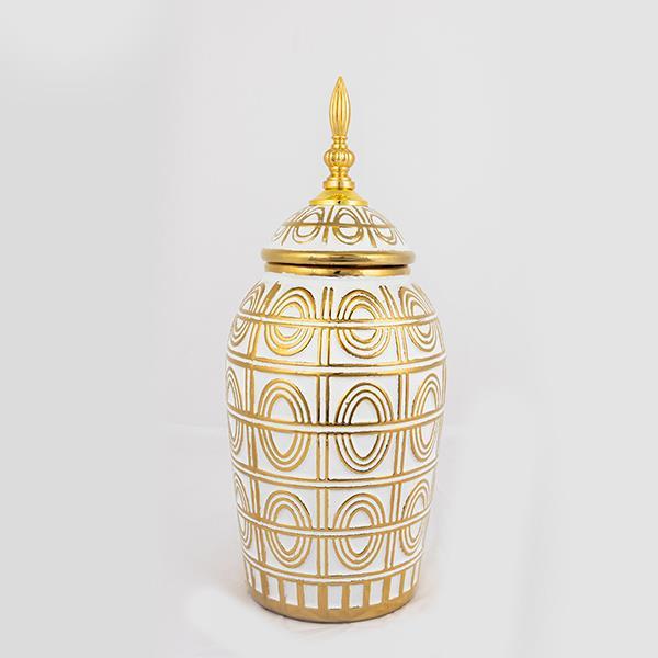 ΒΑΖΟ ΜΕ ΚΑΠΑΚΙ ΚΕΡΑΜΙΚΟ ΛΕΥΚΟ – ΧΡΥΣΟ 15x15x42.5cm 752-20037
