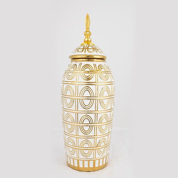 ΒΑΖΟ ΜΕ ΚΑΠΑΚΙ ΚΕΡΑΜΙΚΟ ΛΕΥΚΟ - ΧΡΥΣΟ 15x15x35.2cm 752-20038